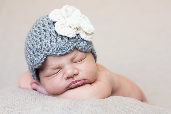 This hat will fit babies 0-3 months. Approximate circumference size is 13". Care instructions: Handwash in cold water & lay flat to dry.